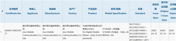 vivo新机通过3C认证:5G自拍手机,支持18W快充