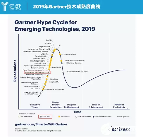 从Gartner在2017年和2018年发布的成熟度曲线来看,Gartner预测超过十年才能达到“强人工智能”阶段。而到了2019年,Gartner将预测的时间调整为了2-5年,时间整整提前了一半,这充分反映了全球顶级第三方机构已经看到了人工智能正在进行着突破性的快速进化。