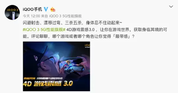 全新4D游戏震感3.0让iQOO 3游戏更震撼