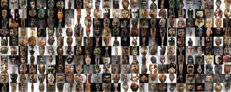 研究人员维克多 迪比亚(Victor Dibia)训练了一个 DCGAN 模型(深度卷积世代对抗网络)来生成非洲面具。