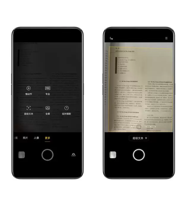那我们该如何去使用这项功能呢?首先打开相机,点击「更多」中的「超级文本」,即可进行拍摄,继而提取图中文字。