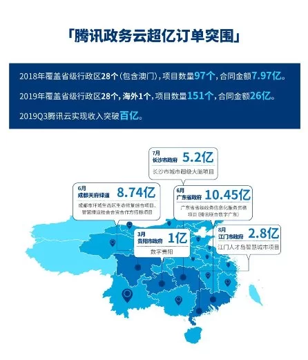 数据显示,腾讯政务云在过去两年已有不错的市场基础:2019年,腾讯政务云数量同比增长56%;合同金额同比增长227%。