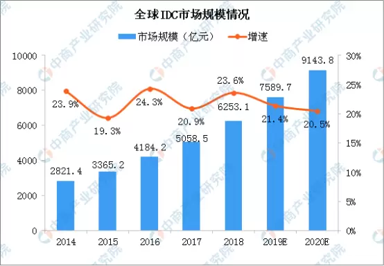 新基建内涵里,算力是核心、数据是要素。在云计算、大数据等蓬勃发展和带动下,数据量呈现爆发式增长,对数据中心的需求也将持续增长。《2018-2019年中国IDC产业发展研究报告》中数据显示,2014年中国IDC业务市场总规模372.2亿元,2018年中国IDC业务市场总规模达1228亿元,预计2020年市场规模将突破2000亿元。