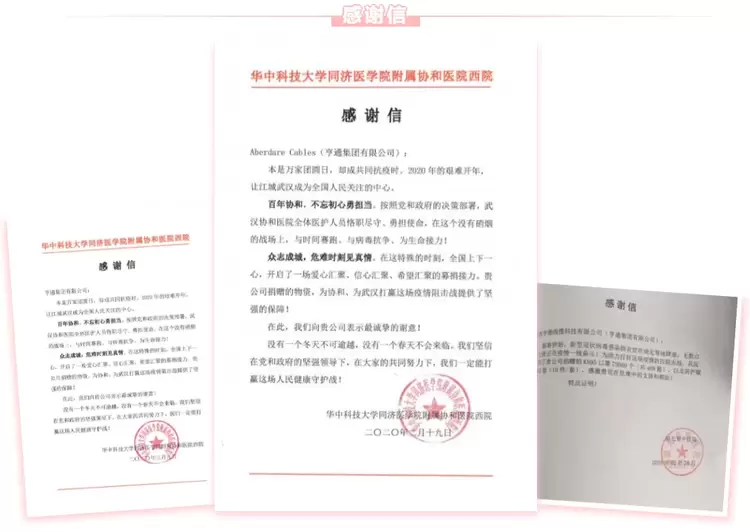 前期,正值国内疫情快速发展期,亨通西班牙Cablescom第一时间安排人员联系当地医疗机构,分两批采购大量医疗口罩、防护服、手套、红外线前额温枪及消毒凝胶等物资,通过国际快递运往国内,助力抗击疫情。亨通西班牙Cablescom公司CEO Veronica表示:“我们所有的力量和鼓励都来自中国,我们将一直与你们同在。”正如Veronica说的一样,同一时间,亨通在南非、德国、巴西、葡萄牙等国家的公司也纷纷行动,通过各种渠道采购大批医疗物资,驰援国内抗击疫情工作。