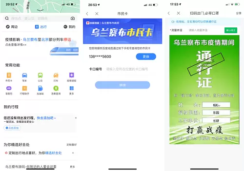 作为市民外出时的高频工具,百度地图支持在导航界面直接打开通行证。身处乌兰察布的市民在百度地图首页出行助手中找到“市民卡”,输入手机号和当前卡口编号,即可由百度地图发起申请,在无需获取市民个人信息的前提下,由区块链跨链计算生成通行证。有效解决了防疫期间,人工核实身份耗时长、纸质登记容易造成交叉感染的问题。