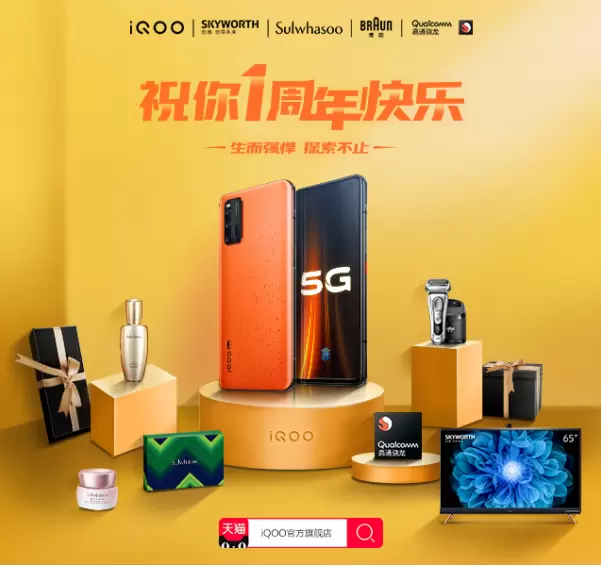 不仅有新款iQOO 3拉力橙开售,为了庆祝iQOO品牌诞生一周年,vivo天猫官方旗舰店还联合了创维、雪花秀、博朗、高通骁龙 4大强悍合伙人,共同为粉丝献礼。除了为大家准备5大品牌福利清单外,还有参与微淘互动赢iQOO新品手机、9.9元秒杀品牌心动好礼等超多福利。