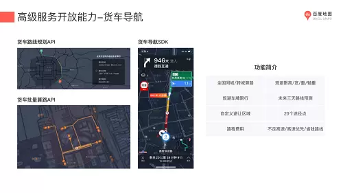 对于此次与中交兴路的合作,百度地图开放平台相关负责人表示对推动百度地图智能物流引擎2.0的优化升级有巨大帮助:“百度地图可为货车司机提供灵活精准的货车路线规划和完善的货车专业数据支持、专项货车物理限制数据,并结合交规限行、货车收费和油费更准确的预估价格;在实际驾驶过程中,能通过语音交互和风险预警提示,辅助货车司机有效规避各类安全隐患。”