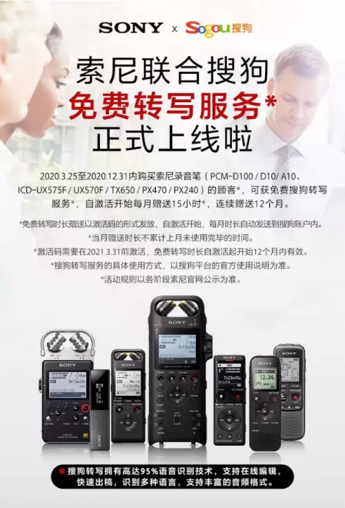 近日,搜狗转写AI硬件化之路再启新章——搜狗转写服务无缝对接索尼录音笔设备,凡购买索尼录音笔的消费者,都可以免费体验搜狗转发服务。这对广大录音笔消费者无疑是一大利好消息。这也是搜狗AI语音技术帮助传统硬件设备人工智能化的一次成功范例。