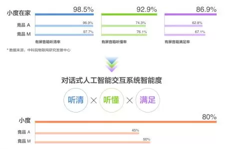 值得一提的是,社区服务更考验一款智能音箱的智能度。一般而言,评价智能音箱好坏主要取决于三个方面:听清、听懂、满足,对于语音识别、语义理解等技术标准,以及背后智能音箱设备的知识完备程度和技能服务生态有更高的要求。去年12月,中科院发布的《智能音箱的智能技术解析及其成熟度测评》提到,在听懂、理解用户指令方面,小度智能音箱是唯一听懂率超过90%的产品,无论无屏还是有屏产品均明显领先于其他品牌。同时,在满足用户需求和体验方面,小度同样在评测中满足度得分第一,其中有屏音箱的用户满足度相对更高。