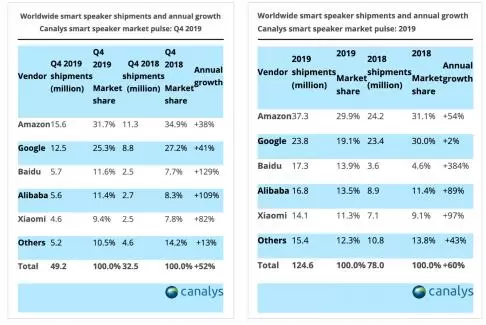 ▲ Canalys发布2019年第四季度及全年智能音箱市场报告