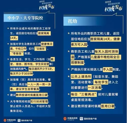 (图:国务院《关于依法科学精准做好新冠肺炎疫情防控工作的通知》学校防控方案)