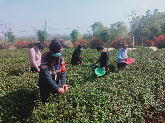 早春三月正逢春茶采摘季。这些天来,孝感孝昌县蔡桥村的茶园里,村民们正忙着采茶,他们中间还有移动人的身影。湖北移动扶贫队员曾秀锦和史红英自疫情发生后就来到村里,每天走村入户开展防控工作。如今,她俩又投入到春耕备耕工作中,每天深入田间地头帮助贫困户抢摘春茶。