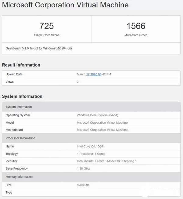 而英特尔LakeField项目是旨在建立一个小巧芯片体积,且具备高效且低TDP值的处理器,而最近国外论坛有玩家曝光了这一项目中新品性能跑分的一些图片以及资讯。曝光的LakeField项目芯片是拥有五核五线程的IntelCore i5-L15G7,而且处理器的命名方式也是有别于我们熟悉的处理器型号命名模式。