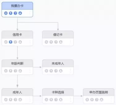 对于需要办理业务的用户咨询,可以用可视化窗口完成对话流程的编辑。例如银行卡的开卡流程: