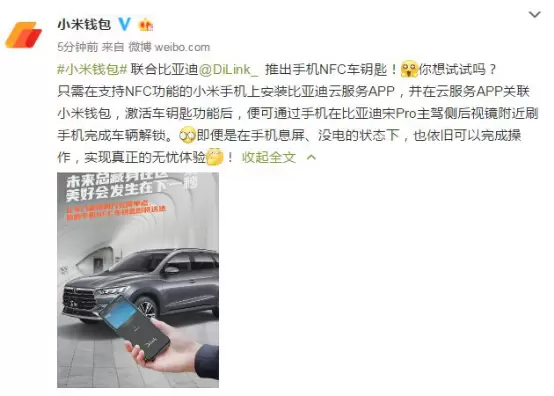 比亚迪DiLink携手小米推出NFC车钥匙,便利升级