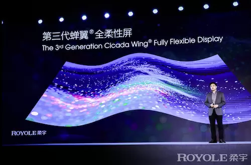 目前,柔宇的第三代蝉翼全柔性屏已经进入量产阶段。据发布会介绍,柔宇使用超低温非硅半导体工艺,非常少的前端投入就能实现非常高的良率和量产,而且有非常高的柔性以及包括它折叠的可靠性。柔宇科技董事长兼CEO刘自鸿博士表示:“我们随时准备着将技术和显示屏能携手我们的合作伙伴,共同实现您的创新设计。”