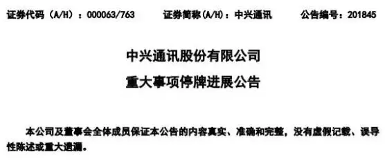 中兴通讯发布最新停牌进展公告:继续停牌