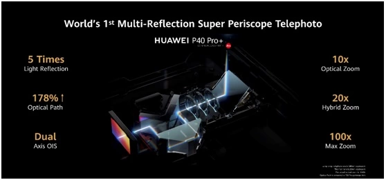 在华为P40 Pro+上,华为创新性的通过多反射潜望式长焦设计,实现了10倍光学变焦,100倍的数字变焦的壮举,这也是智能手机在等效光变的长焦拍摄上,首次打开了10倍的大门。