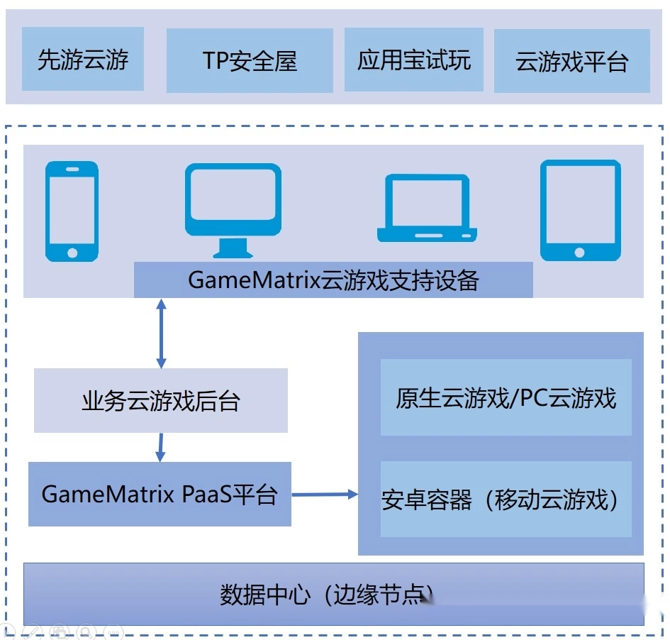 根据腾讯之前的介绍,腾讯GameMatrix通过安卓容器的方式,在国内多个城市部署了移动云游戏集群,提供了即点即玩的云游戏服务。云游戏特点在于用户无需下载,游戏告别繁琐更新,同时不会占用用户手机的任何存储空间。