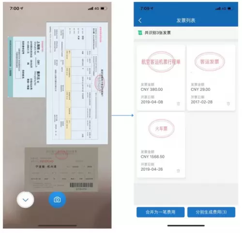 在报销环节将增值税发票、出租车票、火车票和其他票据结构化识别后录入系统,减少人工成本。