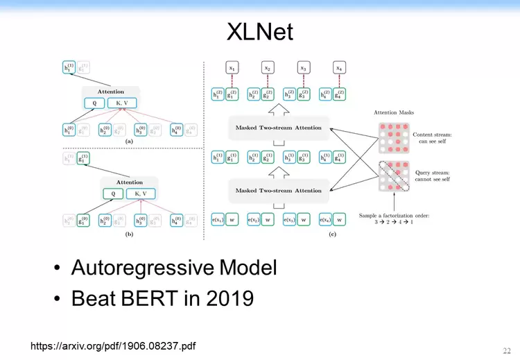 BERT 在 2018 年年底通过预训练打败了 NLP 上 11 个任务的经典算法;XLNet 在 2019 年提出来通过双向网络的方法超过了 BERT (想深入了解的读者可以阅读https://arxiv.org/pdf/1906.08237.pdf),如下图所示: