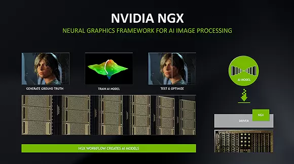 DLSS借助深度神经网络,由英伟达的超级电脑对游戏图形进行训练,通过不断对比学习两组图像(一组图像使用最高品质的抗锯齿而另一组不采用)的画质优劣,这个网络通过学习不断强大,算法得到微调,并最终学会自动化该过程,实现了接近最高品质的抗锯齿效果,同时避免了运动模糊、重影等问题。
