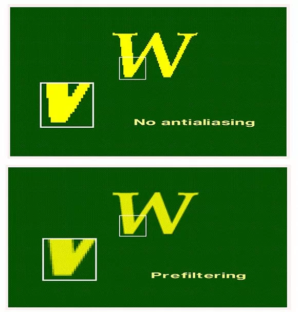 为了剔除这些“狗牙”,工程师们可以说是想尽办法。为了使得画面变得更为精细,要么选择提升画面分辨率,降低“锯齿”大小,要么选择对像素的颜色进行处理,减少相邻画面之间的颜色差异。