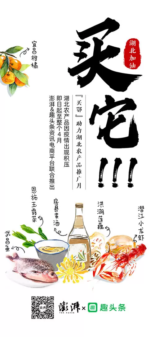 随着湖北省解除管控措施,湖北各地市生产生活逐步恢复正常,为推动湖北农产品销售,澎湃新闻联合趣头条旗下的资讯和电商平台等,共同发起“买鄂”助力湖北农产品推广月活动,将从即日起至整个4月全力宣传推广湖北农副产品。
