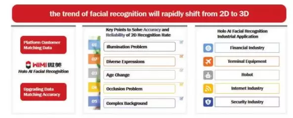 近年来,面部识别行业的应用市场不断扩大。为获得更好的准确性和质量,面部识别应用呈现了从二维技术向三维技术过渡的趋势。以。出现这种趋势的原因是二维面部识别技术易受到姿势、光线、外观和其他因素的影响,从而使识别率下降。因此,微美云息相信三维技术将逐渐取代三维面部识别技术。微美云息的计划是通过基于人工智能的算法提供3D面部识别全息云应用服务。微美云息的未来计划是通过微美云息的3D面部识别全息云技术满足各行的潜在客户,如家庭、零售、旅游、电信、金融、国家安全、机器人、教育、社会媒体、终端设备、商业、运输、智能商务或其他潜在应用。