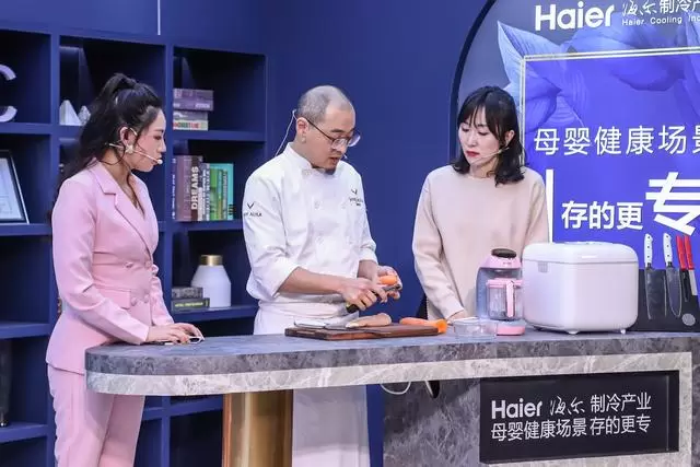 "大宝上网课,二宝8个月了要做辅食,整天为吃啥犯愁!"下午18:30,宝妈芳芳在众播中的一番话引发了很多人的共鸣。针对这一问题,海尔冰箱发布母婴健康饮食场景,不仅可实现黄金4℃存母乳、在线咨询营养师做辅食,现场还请到了米其林大厨"支招",通过海尔冰箱构建的食联生态,从买菜、存菜到做饭提供全流程健康保障。