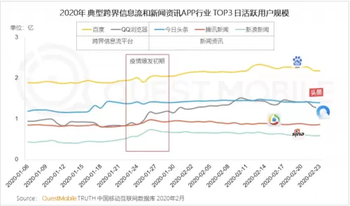 移动互联网的日人均使用时长为6.8小时,同比2019年春节时期延长了1.2小时。春节过后,这一数字还在上涨,达到了7.3小时。结合这一点,报告也专门指出,疫情爆发初期,由于网民普遍信息焦虑,以百度为代表的信息资讯类APP的疫情直播和新闻报道等成为获取最新资讯最快的途径,用户规模和使用时长均明显上升。