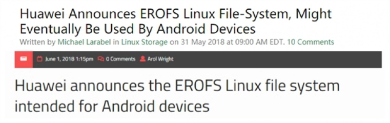 暂时还不清楚EROFS何时会被华为纳入Linux内核,不知道它和华为近段时间预热的提升手机速度的“吓人技术”是否有联系。