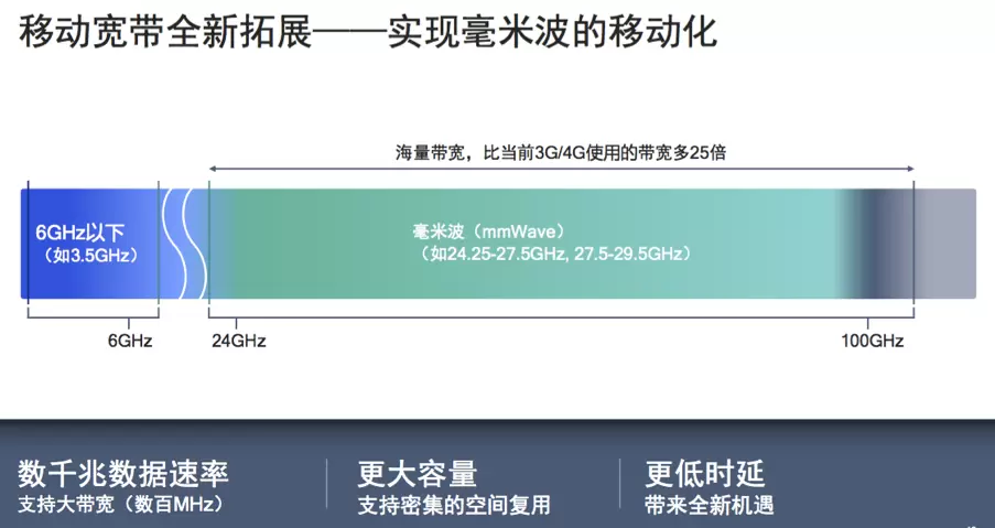 在高通近日举行的“5G的未来”媒体分享会上,高通中国区研发负责人徐晧在演讲中多次强调毫米波的技术优势。在他看来,为了实现5G的极致速率,必须要运用毫米波技术,因为毫米波的带宽是6GHz以下频段无法企及的,因此,毫米波技术是5G设计中不可缺少的核心技术之一。