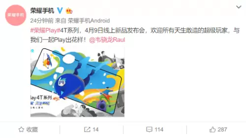 荣耀Play 4T系列获官宣,将于4月9日发布