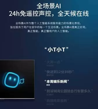 为了减少消费者的使用成本,TCL P9 好莱坞剧院电视还配置了 Handfree 免唤醒AI助手。观看影视内容的时候,可以通过语音助手找内容,播放内容。而在播放状态中时,就可以不需要唤醒词,直接说出“暂停”“下一集”“上一集”等指令,符合最自然的交互体验。AI 助手小 T 还拥有多轮语音交互能力,也就是如果一个问题不能说明白,可以通过连续的多次对话明确指令。