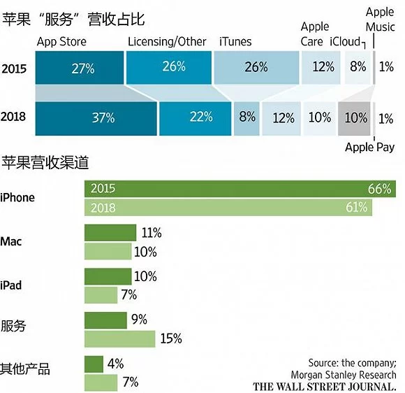 谷歌通过AdMob、AdWords和DoubleClick Ad Exchange销售广告,一般来说,谷歌抽取30%的分成,其它收入会给出版商。现在智能手机销量停滞不前,iPhone增长放缓,苹果将目光转向服务业务,包括App Store销售、音乐流媒体付费订阅服务、移动支付。截止2017年9月底的一个财年里,苹果服务营收占到总营收的13%,达到299.8亿美元,其中App Store广告业务只占很小一部分。苹果的目标是在2020年之前让服务业年营收达到500亿美元。