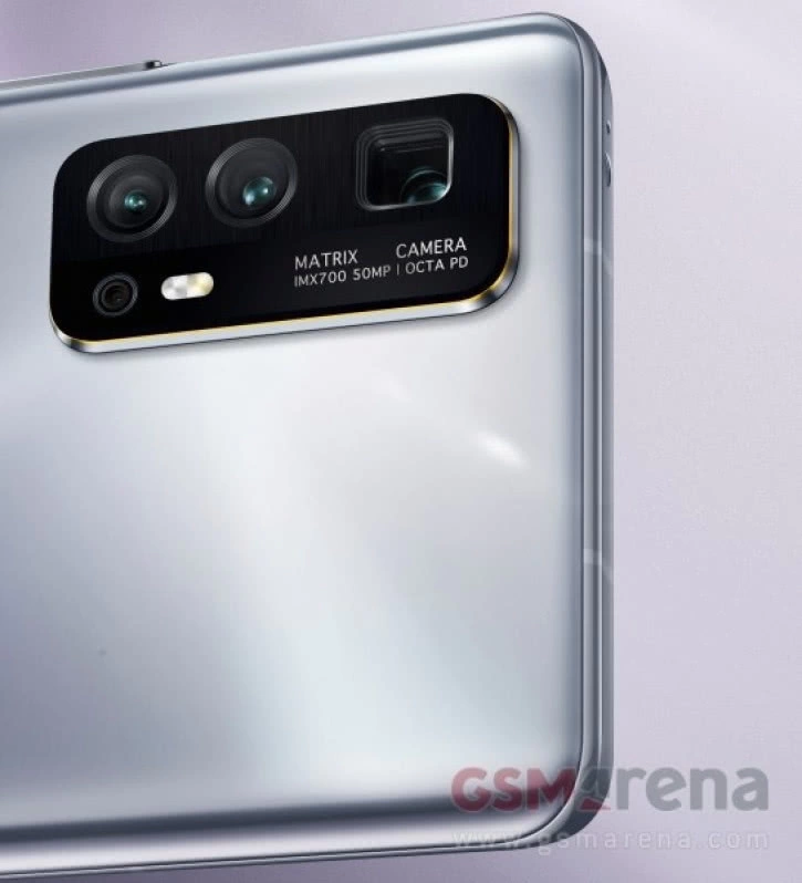 不仅如此,国外网站GSMArena也独家放出了荣耀30系列的背面渲染图,虽然同样为装饰有金圈的矩阵相机设计,但由于潜望式长焦的位置发生了变化,并在增加了一枚镜头的同时还标记了与华为P40系列同款的IMX700传感器型号和八核PD对焦等字样,因此应该是传说中的荣耀30 Pro或30 Pro+。由此看来,荣耀30系列三款机型都会标配潜望式长焦已经没有什么悬念。