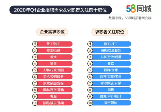 作为国民招聘大平台,58同城每季度都对招聘求职情况进行分析盘点,从城市、岗位、薪资等维度予以统计对比,为求职者和招聘方提供参考借鉴。今年一季度,全世界遭遇了始料不及的新冠肺炎疫情,58同城不仅如期提供招聘求职报告,还通过一系列线上招聘会和在线智能招聘工具,满足招工和求职需求,实现人岗精准匹配,为复工复产和稳就业作出积极贡献。未来,58同城将继续践行企业社会责任,与广大求职者和企业同舟共济,以更精准高效的招聘服务为用户、客户降本增效,为人才和企业创造价值。