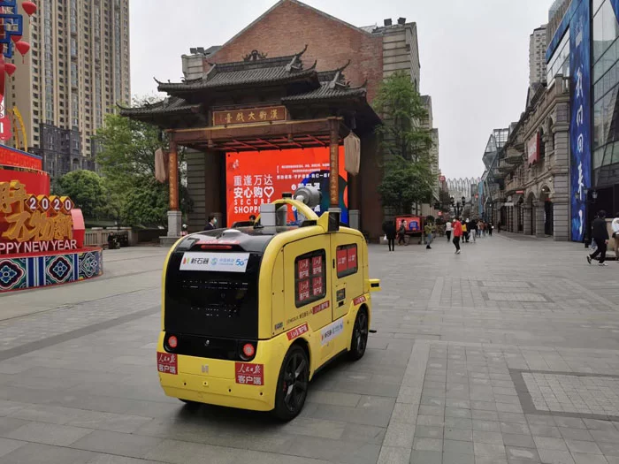 “基于移动5G通信和网联自动驾驶技术,可实现车辆自动驾驶能力,包括循迹自动驾驶,行人识别和动态避障、区域动态限速、交通信号灯通行、超视距、车辆动态调度等场景。”湖北移动相关技术人员介绍,在遇到行人时,无人直播车会通过AI大脑进行辨别,自动放缓“步伐”进行避让,还能与路人进行互动。