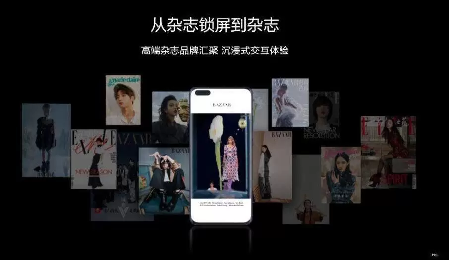 4月8日华为正式发布了新一代影像旗舰P40系列,HUAWEI Magazine也携《时尚芭莎》电子刊全新首发,其他高端杂志蓄势待发。2014年,华为在业界首创杂志锁屏,通过手机锁屏与海量精品杂志的完美结合,为用户带来精美多元的视觉体验,本次发布会上全新首发的HUAWEI Magazine让时尚美学体验再次升级,触及了国内高达4.5亿的华为主题用户。