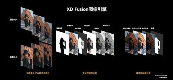 华为的XD Fusion是在计算摄影上走得比较早、目前行业能力也比较靠前的一个解决方案。这个方案为三层: