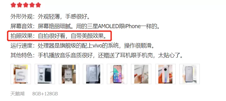 除却外观和性能之外,vivo S6的另一大杀手锏就是持续优化的夜景自拍功能。不少用户表示,购买这款手机就是冲着它的拍照功能。