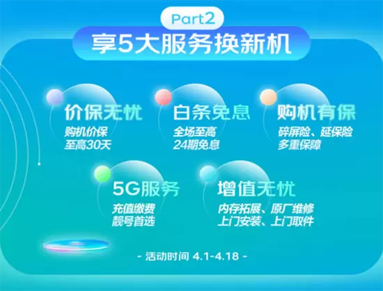 在此背景下,京东手机启动了声势浩大的换新季活动,除了推出众多优惠福利,还与手机厂商深度合作上线五大换新服务。其中,价保无忧解决了消费者最头痛的“手机刚买就降价”的问题,长达30天的购机价保,让消费者不必再为此忧心;至高24期的白条免息,则让消费者可以放心购物;碎屏险、延保险等多重配套保障服务,又彻底解决了新手机到手之后的后顾之忧,避免了使用中的诸多麻烦。