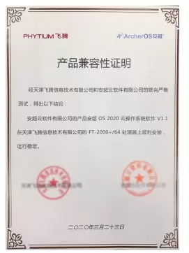 安超OS 2020与FT-2000+/64处理器芯片完成适配后,对于安超OS 2020的用户来说,拥有了业界领先的计算性能、访存带宽和IO扩展能力。而对于FT-2000+/64处理器芯片的用户来说,安超OS具有开放兼容的特性,能够完全支持并兼容飞腾芯片,提供更加安全可靠的国产化云平台,全面加速政府和企业上云进程。