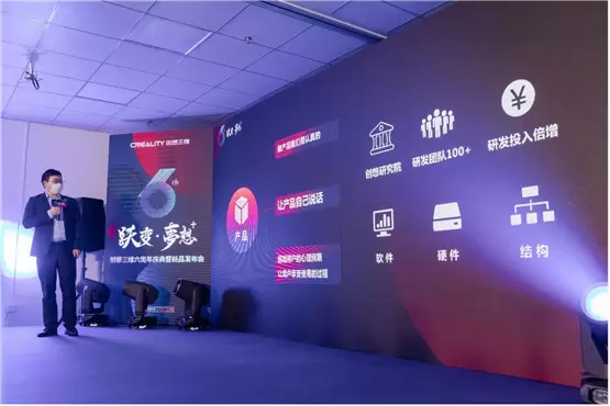 4月9日下午2:30,以“跃变·梦想+”为主题的创想三维6周年庆典暨新品发布会在深圳总部正式启动。创想三维联合创始人陈春、刘辉林、敖丹军、唐京科及众创三维总经理郭继杰等领导出席了庆典。现场通过网易新闻、南极熊、Facebook、YouTube、B站、抖音、微信等平台向全世界3D打印用户同步直播,庆典在热情的开场秀中火力全开。