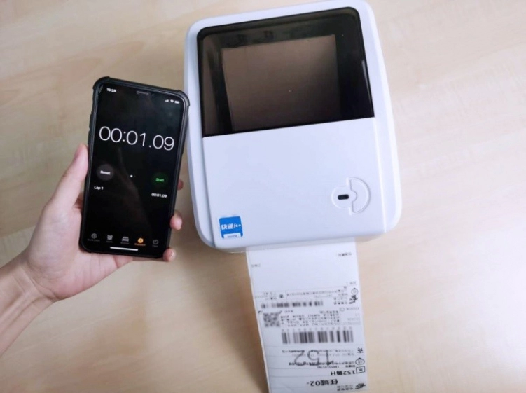 在打印快递单速度方面,一联快递单的打印时间约为0.9秒,二联快递单的打印时间在1.1秒左右。比蓝牙打印机的速度还是快很多,与其他云打印机基本持平。
