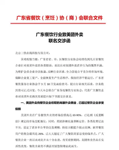 上周,广东省餐饮服务行业协会发布致美团外卖的联名交涉函,直指后者涉嫌垄断、佣金高企,呼吁其取消独家合作限制、直接减免佣金,给予餐饮行业实质性帮扶。