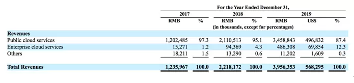 而企业云服务的收入占比则逐年增加,其主要按项目向客户收费,在过去三年的占比分别为1.2%、4.3%和12.3%,这一业务的客户主要来自政务、金融和医疗行业。