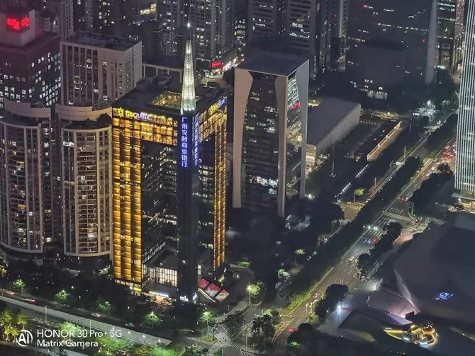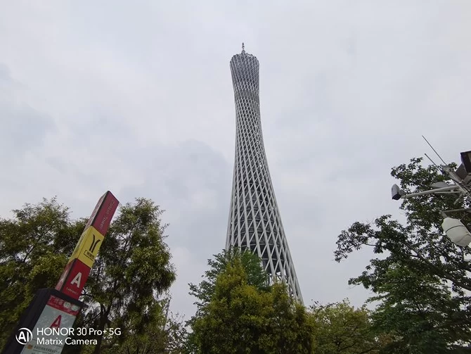 我们登上了广州的最高点使用荣耀30 Pro+进行拍摄,荣耀30 Pro+的长焦能拥有非常好的拍摄效果,荣耀30 Pro+支持5倍光学变焦和10倍混合变焦,而实际测试中发现,荣耀30 Pro+在5倍到10倍之间的拥有非常好的画质,到达20倍变焦已经能保持清晰的拍摄效果。荣耀30 Pro+的长焦还能支持超级夜景拍摄,使用长焦进行夜景拍摄带来非常震撼的效果。