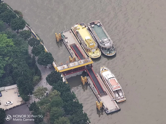 再来看一下使用20倍变焦拍摄的广州塔码头,可以看到码头上的“珠江日夜游”的字体也是能清晰呈现。荣耀30 Pro+使用20倍变焦拍摄时虽然是数码变焦,但在画质依然有保证。